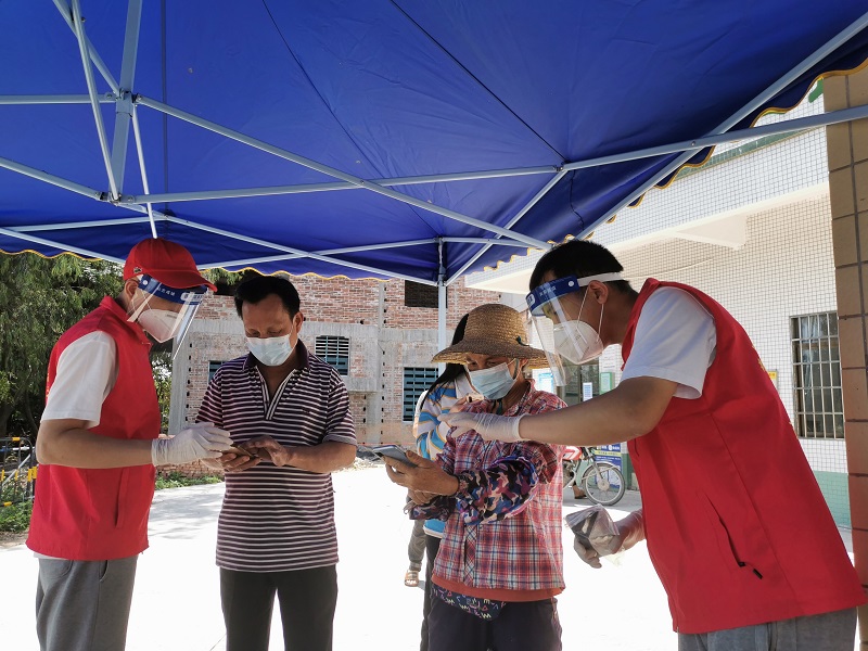 在核酸采样过程中,志愿者们服从指挥,坚守各自岗位,尽心尽力维护现场排队秩序,控制排队间距,提醒群众出示粤康码、行程码、核酸码以及测量体温等,耐心引导村民群众有序排队,帮助群众解疑答惑。提高了核酸检测点的效率,确保疫情发生后在规定时间内,保质保量完成划定区域范围内新冠病毒全员核酸检测任务,有效阻断疫情扩散,齐心协力决战决胜疫情防控硬战。